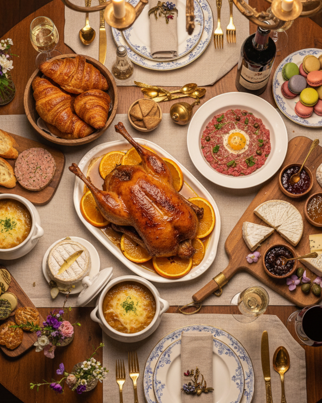 Am 8. Dezember 2025 entführen wir Sie im stimmungsvollen Ambiente der Weinkosterei auf eine kulinarische Reise quer durch Frankreich. Freuen Sie sich auf ein fein abgestimmtes 3-Gänge-Menü, das klassische französische Küche mit eleganter Raffinesse vereint. Vom zarten Beef Tartar über die aromatische Zwiebelsuppe bis zur legendären Ente Orange.